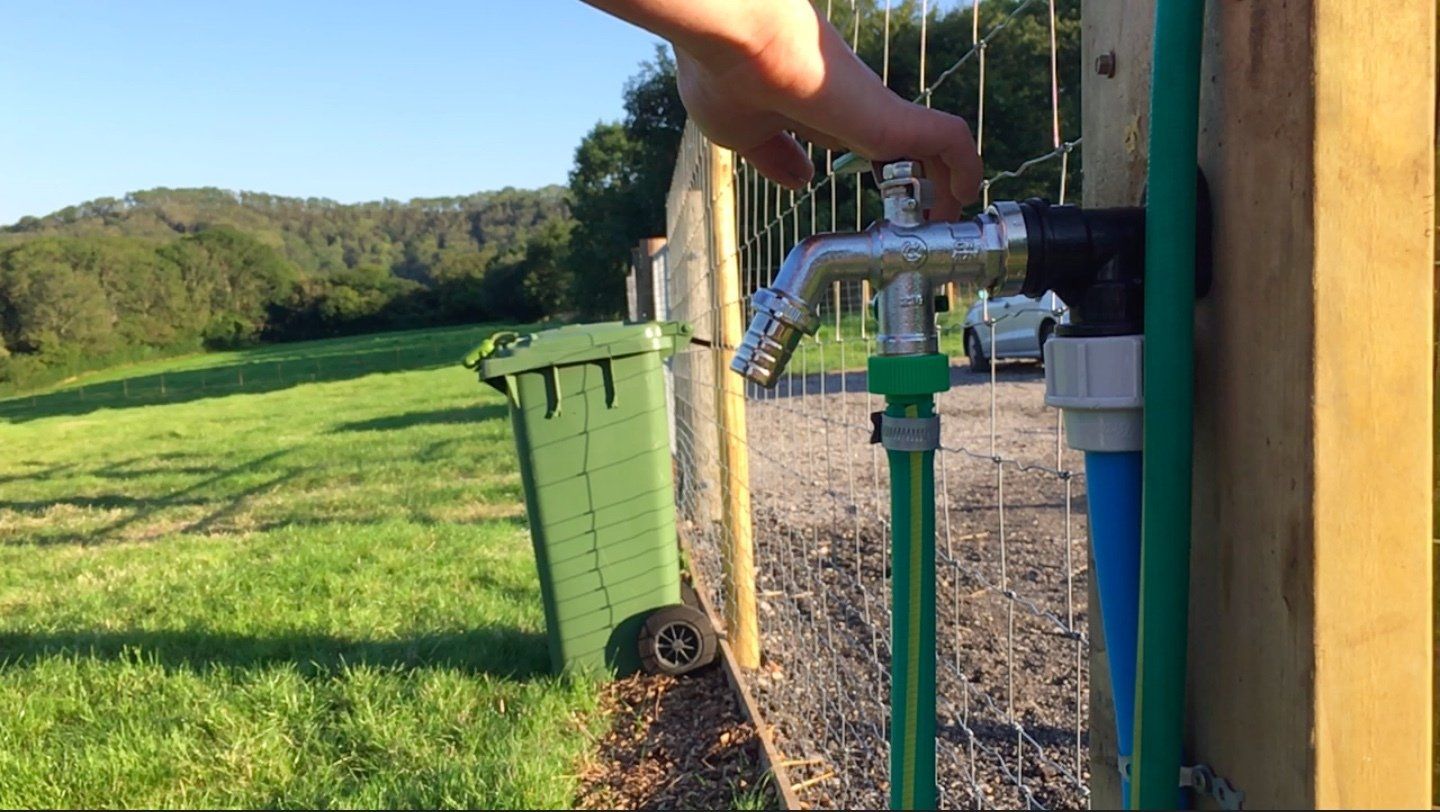 Drinking water for thirsty dogs at entrance / exit (and hose for rinsing paws)